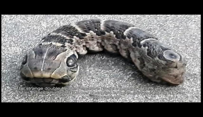 عثرت سيدة أرجنتينية، في فناء منزلها على مخلوق غريب شبيه بالأفعى، وله رأسان.
