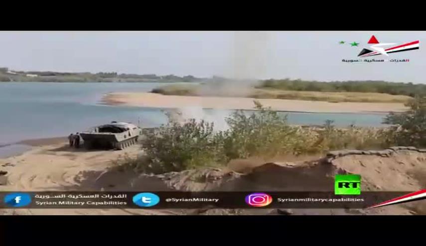 سوريا_الكوثر: نشر الجيش السوري مشاهد لعملياته في عبور الفرات وتمهيد الضفة الشرقية للنهر قبل اقتحامها وذلك عشية إعلان الأركان الروسية عن القضاء على "داعش" الارهابية، وتحرير كافة الأراضي السورية منه.