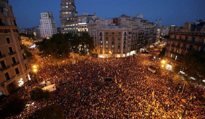 العالم-الكوثر شارك عشرات الآلاف من سكان كاتالونيا في وسط برشلونة في مظاهرة نُظمت للمطالبة بالسماح لهم بالمشاركة في الاستفتاء الذي تعتبره مدريد غير دستوري، و ذلك بعد عمليات تفتيش واحتجاز في هذا الإقليم، تحسبا للاستفتاء على الانفصال عن إسبانيا.