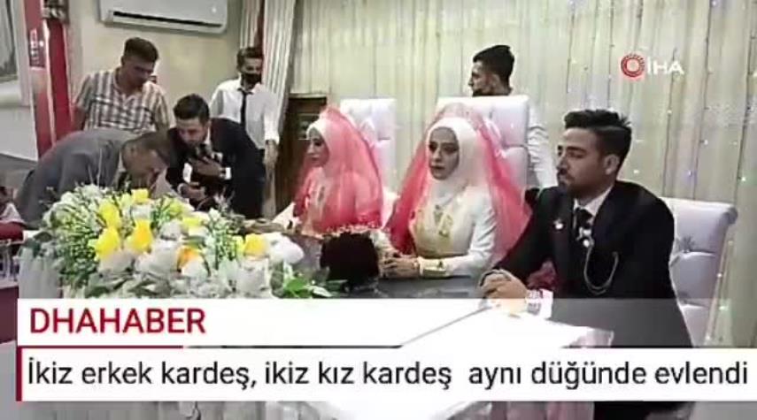 منوعات_الكوثر:اقيم حفل زفاف غريب من نوعه ونادر الحدوث، حيث تزوج أخوان توأم في نفس اليوم من أختين توأم في تركيا.