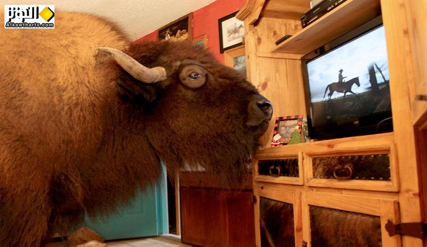 يرغب البعض باقتناء القطط والكلاب وغيرها من الحيوانات الأليفة داخل المنزل، لكن زوجين أمريكيين قررا استئناس جاموس ضخم وتربيته داخل منزلهما بولاية تكساس.