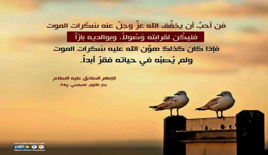 من أحب أن يخفف الله عز وجل عنه سكرات الموت فليكن لقرابته وصولا وبوالديه بارا