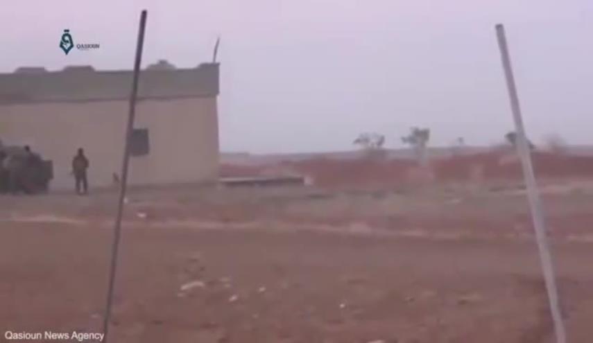 في لحظة مروعة، قام انتحاري بتفجير نفسه على بعد أمتار قليلة من جنود تابعين للجماعات المسلحة في سوريا، ولكن مسلح "داعش" لم ينجح في مهمته؛ إذ لم يكن بالقرب الكافي كي يقتل أحدا حين انفجرت قنبلته.