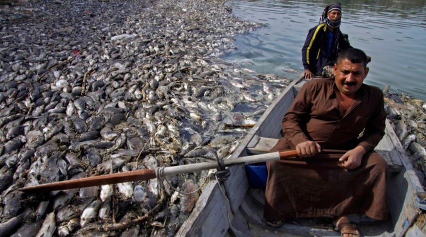 بالفيديو.. نفوق آلاف الأطنان من الأسماك في العراق