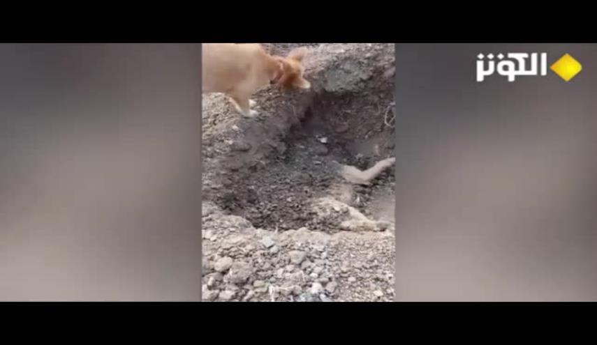 أظهر فيديو لحظات مروعة لكلب يساعد في دفن آخر بعد أن صدمته سيارة، حيث تظهر لقطات الفيديو كلبا حزينا يحفر في الأرض بأنفه لحفر قبر غير عميق ليدفن فيه صديقه، وقد ظهر وهو يغطي الكلب بالتراب.