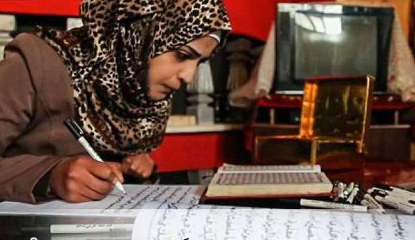 أول فلسطينية في غزة تنسخ القرآن بالرسم الكوفي