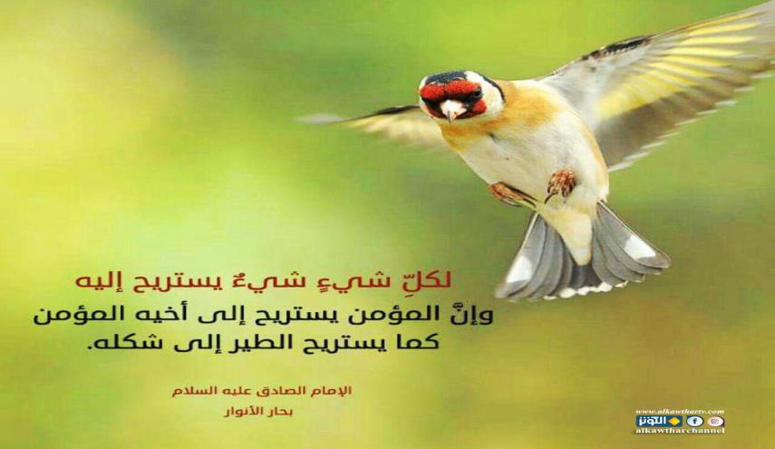 لكل شئ شئ يستريح له وإن المؤمن يستريح إلى أخيه المؤمن كما يستريح الطير إلى شكله