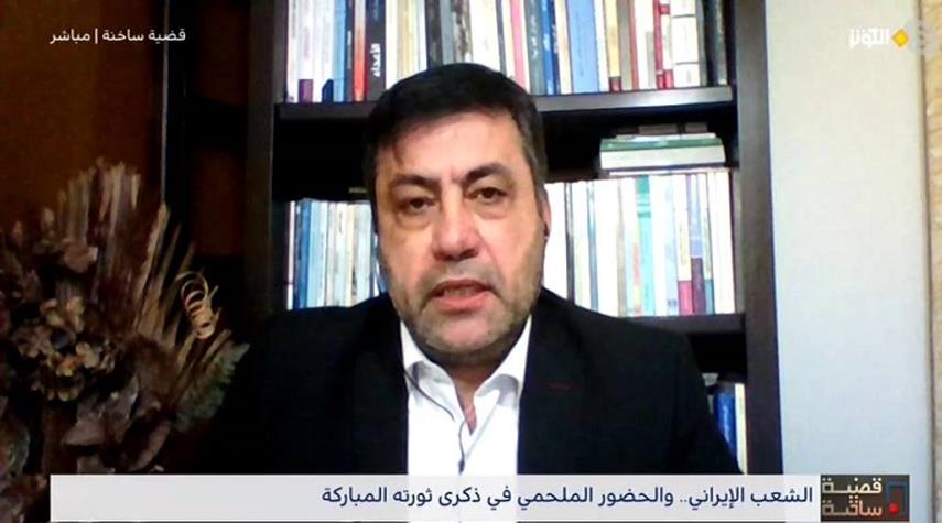 تحدث أستاذ العلوم السياسية والعلاقات الدولية الدكتور علي بيضون خلال مشاركته في برنامج قضية ساخنة عن الثورة الإسلامية وأهدافها وحيويتها ونشاطها وأضاف: ما نشهده اليوم من مسيرات مليونية هو مشاهد متكررة، وإن الثورة لا تزال قائمة ومستمرة.