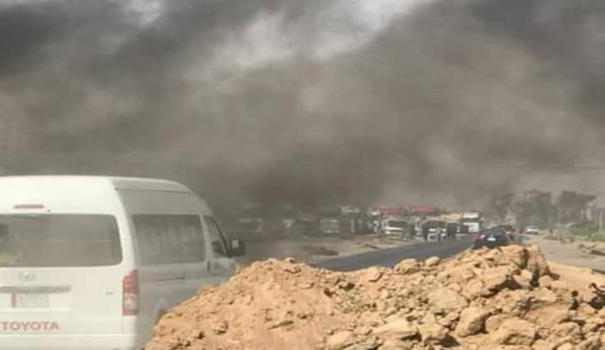 بالصور.. قطع طريق كركوك – بغداد