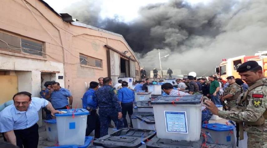 شاهد بالصور... نقل صناديق الاقتراع من مكان الحريق في بغداد