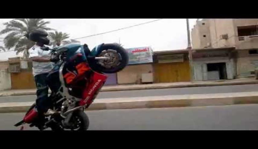 العراق _ الكوثر: قام شاب بغدادي بقيادة دراجته النارية من محافظة البصرة الى محافظة ذي قار وهو واقف فوقها ويرفع بيده العلم العراقي، حيث يطمح من خلال الرحلة الى دخول موسوعة "غينيس" للأرقام القياسية.