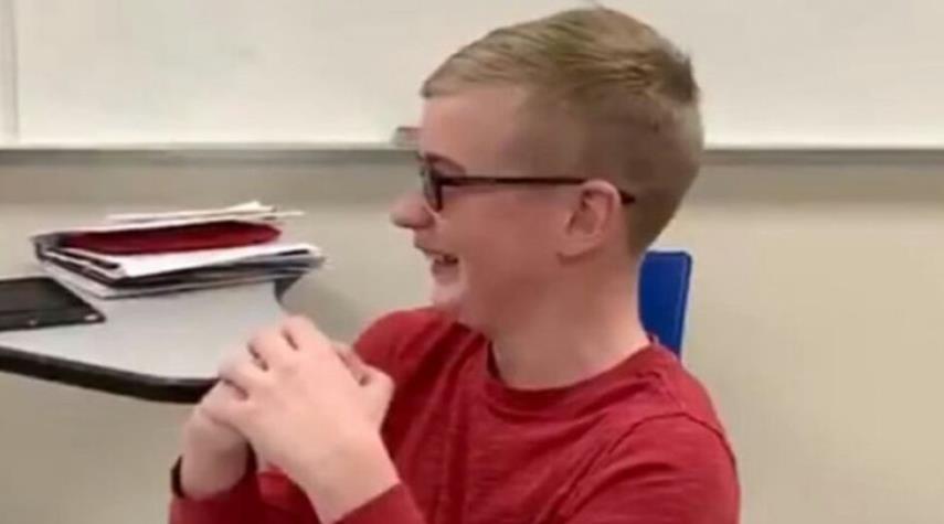 منوعات _ الكوثر: استطاع طفل أميركي مصاب بمرض "عُمى الألوان" أن يرى لأول مرة في حياته الألوان بمساعدة نظارة خاصة أعطاه معلمه.