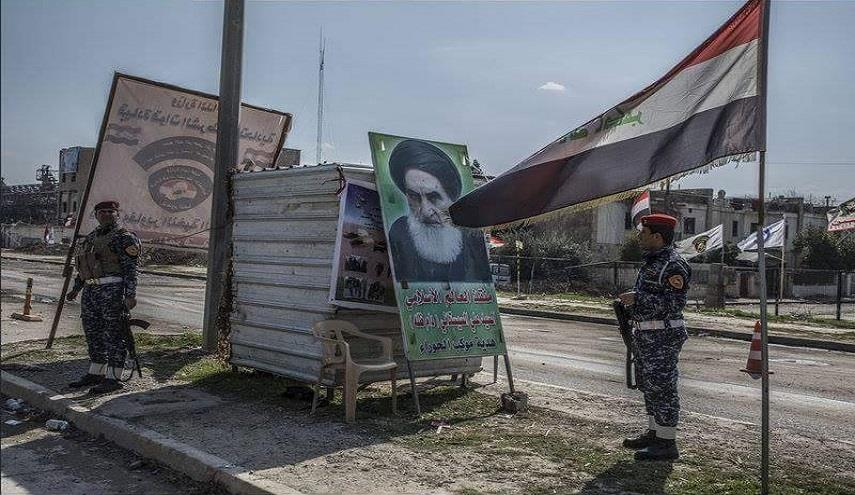 إلتقط مصور يعمل في صحيفة لوموند الفرنسية صورة للمرجع الديني آية الله السيد علي السيستاني مثبتة قرب إحدى نقاط التفتيش في مدينة الموصل.