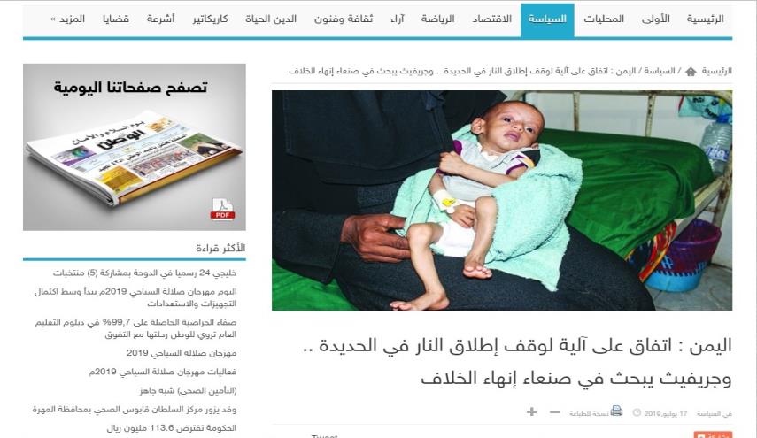 جريدة الوطن: "اتفاق على آلية لوقف اطلاق النار في الحديدة"