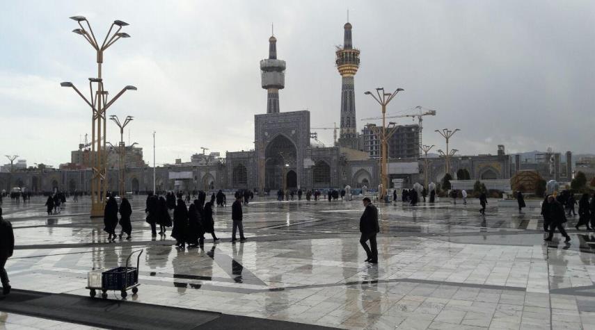 ايران - الكوثر: شهد مرقد الامام الرضا عليه السلام شمال شرق ايران امطارا غزيرة اضفت على جمال المكان جمالا باهرا.