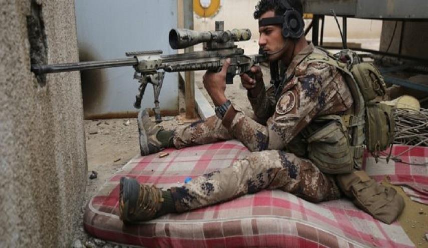 نشرت القوات العراقية قناصة على مبان لاصطياد المسلحين من عناصر جماعة "داعش" الارهابية الذين يستخدمون مدنيين دروعاً بشرية في غرب الموصل.