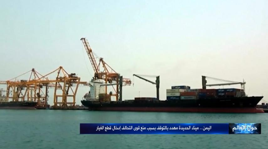 في ظل استمرار الممارسات الممنهجة لدول التحالف ومنعها إدخال قطع الغيار لميناء الحديدة أصبح الميناء مهدداّ بالتوقف عن العمل ، وذلك ماحذرت منه مؤسسة مؤانئ البحر الأحمر واعتبرته تهديداً خطيراً .