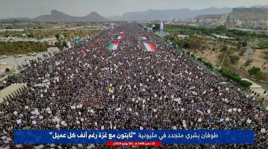 "مع غزة جهاد مقدس ولا خطوط حمراء"هذا هو حال المئات الآلاف من المحتشدين في العاصمة صنعاء ومختلف المحافظات اليمنية مؤكدين من خلال الخروج المليوني الاسبوعي المستمر انهم ماضون في النصرة والاسناد على كافة الاصعدة حتى النصر المبين لغزة وفلسطين.