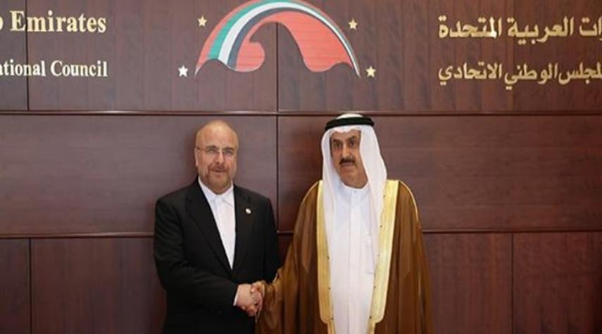 قاليباف لنظيره الاماراتي : الأولوية لدى طهران تطوير العلاقات مع دول الجوار