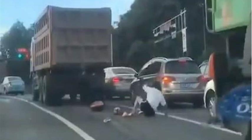 شيئ لايصدق..شاحنة تمرّ فوق فتاة بعد صدم دراجتها