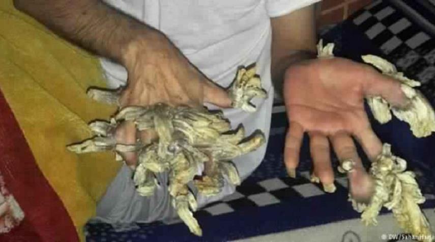 منوعات _الكوثر: طالب رجل من بنغلاديش يعرف باسم "رجل الشجرة" عبر الإنترنت، ببتر يديه، جراء مرض جلدي نادر للغاية، في محاولة يائسة لتخفيف الألم.