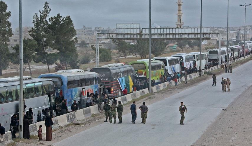 سوريا - الكوثر: أنهت الحكومة السورية عملية إخراج المئات من مسلحي "فيلق الرحمن" وعائلاتهم من مدينة دوما في الغوطة الشرقية بريف دمشق إلى إدلب.
