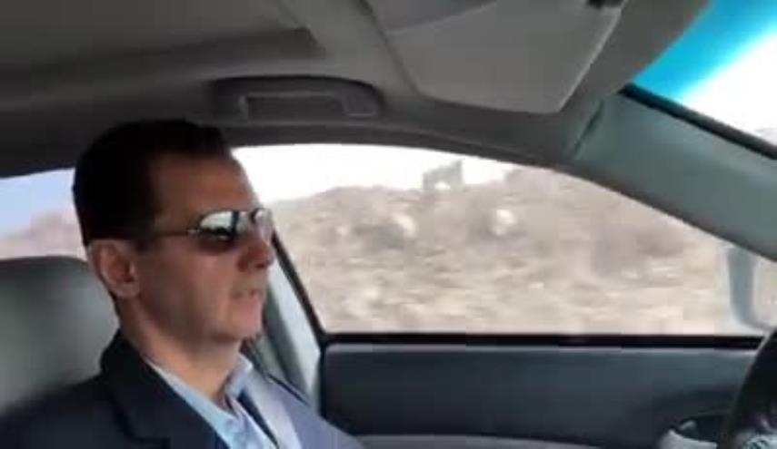 شاهد بالفيديو.. الرئيس الأسد يقود سيارته إلى غوطة دمشق
