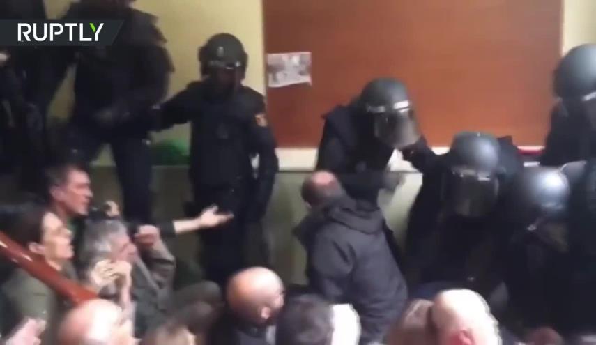 اوروبا - الكوثر أظهر مقطع فيديو نشرته وسائل إعلام، قيام رجال شرطة إسبان بكسر يد فتاة جاءت للتصويت على الاستفتاء على انفصال الإقليم عن المملكة الإسبانية.