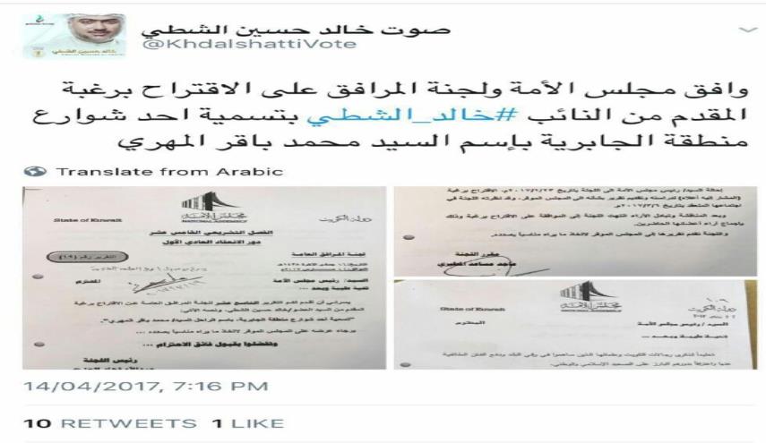 موافقة مجلس الأمة الكويتي على تسمية شارع باسم محمد باقر المهري