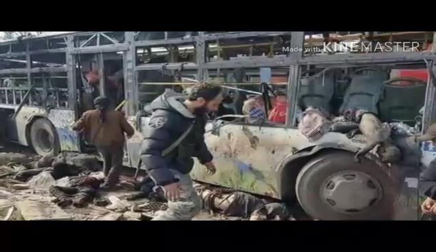 اقدم التكفيريون الارهابيون على مجزرة مروعة في مكان توقف باصات تحمل اهالي الفوعا وكفريا لنقلهم الى مدينة حلب طبق التوافق الذي حصل بين الحكومة السورية وما يسمى بفصائل تحرير الشام...