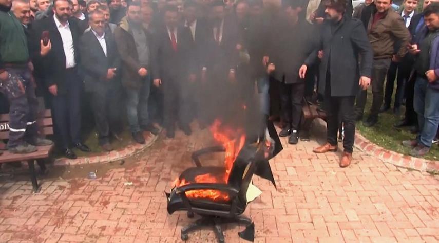 رئيس بلدية تركية منتخب يضرم النار في كرسيه !!
