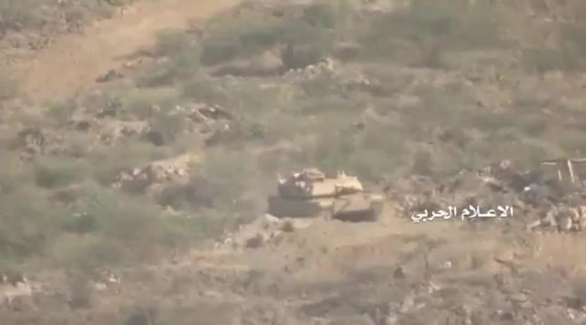 الاعلام الحربي اليمني ينشر مقطعا مصورا لإعطاب دبابة أبرامز سعودية