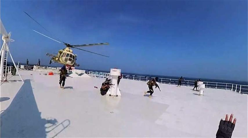 شاهد... لحظة احتجاز السفينة الإسرائيلية في البحر الأحمر