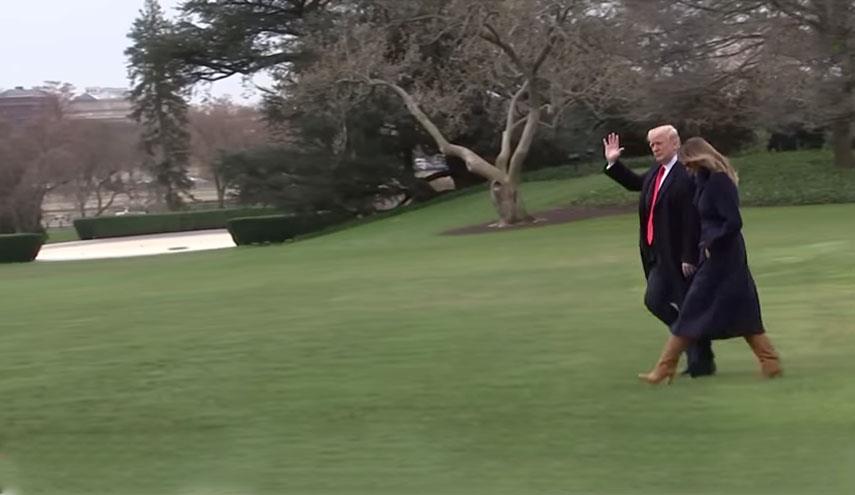الامريكيتان-الكوثر: أظهر تسجيل مصور للرئيس الأمريكي دونالد ترامب وهو يقوم بإنقاذ زوجته ميلانيا من السقوط أثناء سيرهما إلى المروحية الخاصة بالرئاسة.