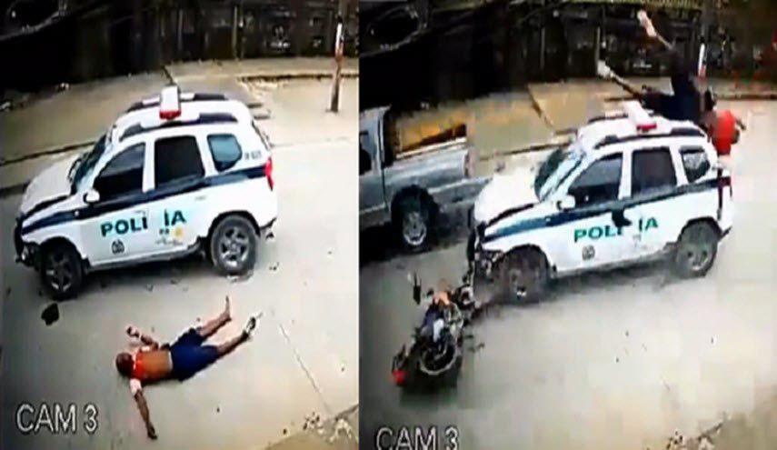 بالفيديو... هذا ما فعلته سيارة شرطة بسائق دراجة نارية!
