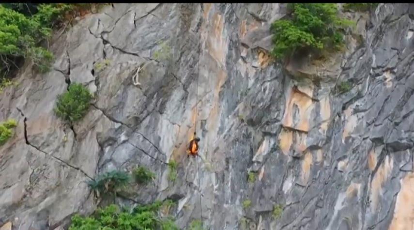 شاهد بالفيديو : مظلي يعلق بين الصخور عدة ساعات