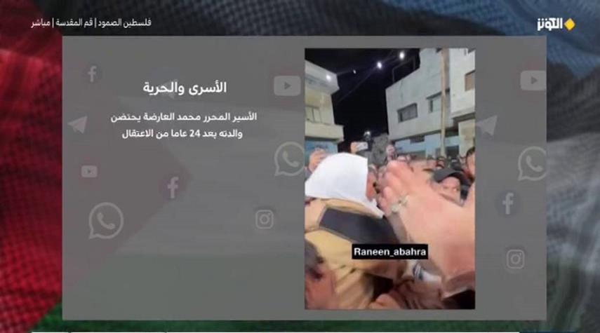 لقاءالأسير محمد العارضة مع والدته بعد فراق دام لـ 24 عام في سجون الاحتلال الصهيوني المجرم .