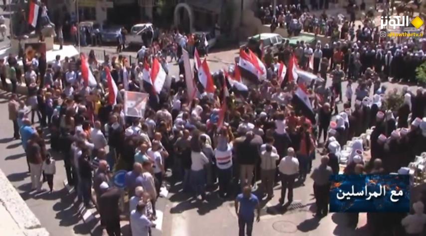 هبة لسكان الجنوب السوري احتجاجاً على بناء الاحتلال الاسرائيلي لتوربينات على الاراضي الزراعية في الجولان المحتل.