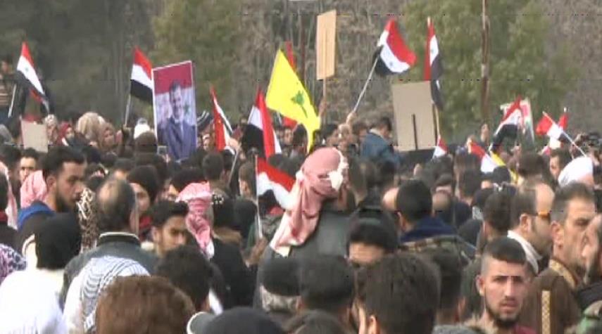 سوريا_الكوثر: شهدت ساحة سعد الله الجابري في وسط محافظة حلب تجمعا جماهيريا احتفالا بانتصارات الجيش السوري ودحره الإرهابيين من القرى والبلدات في محيط المدينة.