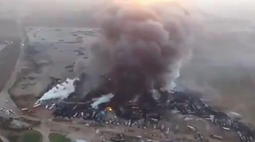 سوريا-الكوثر: ضربت موجة صاروخية مجهولة سوقا ضخما للنفط السوري المسروق، تديره جماعة "جبهة النصرة" الارهابية بريف إدلب الشمالي.