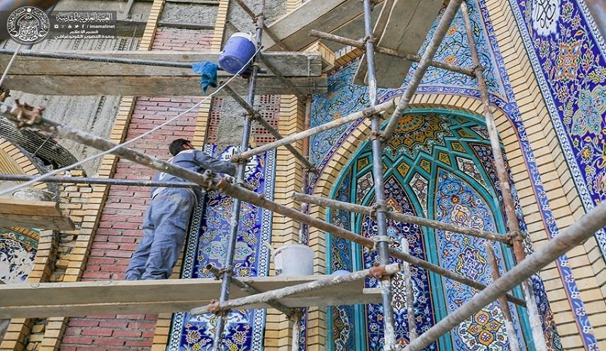 بالصور.. أعمال تغليف الواجهات الخارجية والداخلية لمشروع صحن السيدة فاطمة (ع)