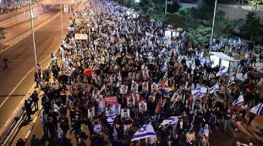 آلاف الالصهاينة يتظاهرون للمطالبة بإبرام صفقة تبادل الأسرى