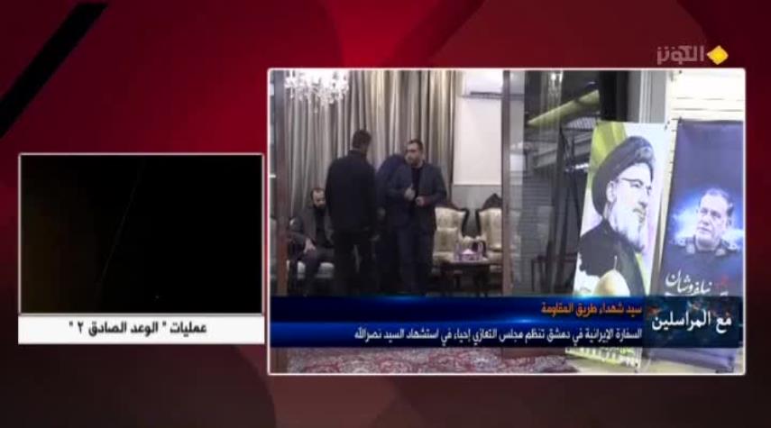 مع المراسلين... السفارة الايرانية في دمشق تنظم مجلس التعازي احياء لاستشهاد السيد نصر اللله