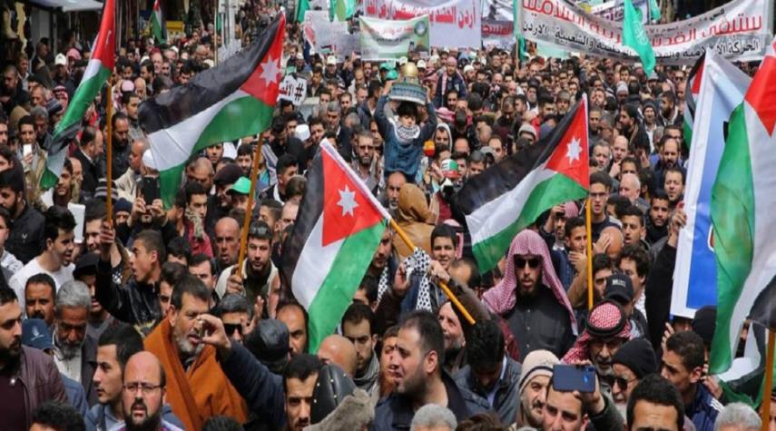 الاردن - الكوثر: تظاهر آلافُ الأردنيين في عمّان تضامناً مع الفلسطينيين ومسيراتهم في يوم الأرض. التظاهرة التي حملت عنوان “انتصاراً للقدس والمسجد الأقصى”، ندّدت بقرارِ الرئيسِ الأميركيِ دونالد ترامب بسط سلطةِ الكيانِ الصهيوني على الجولان.