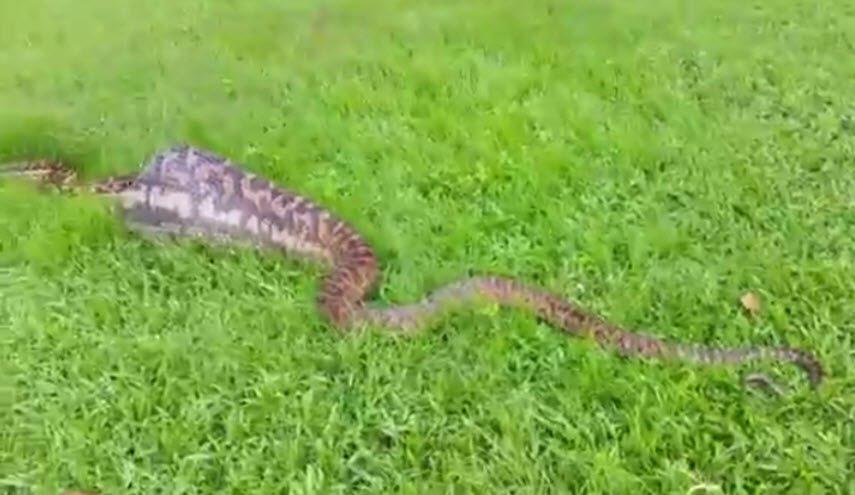 قامت أفعى ضخمة بابتلاع كنغر في إحدى المدن الأسترالية.