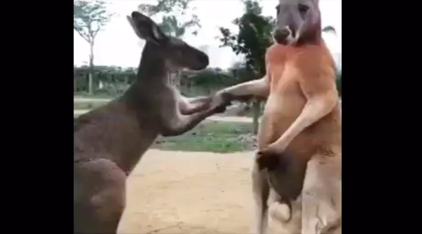 بالفيديو... أنثى الكنغر تعتذر من زوجها ورد فعل مفاجئ!!!