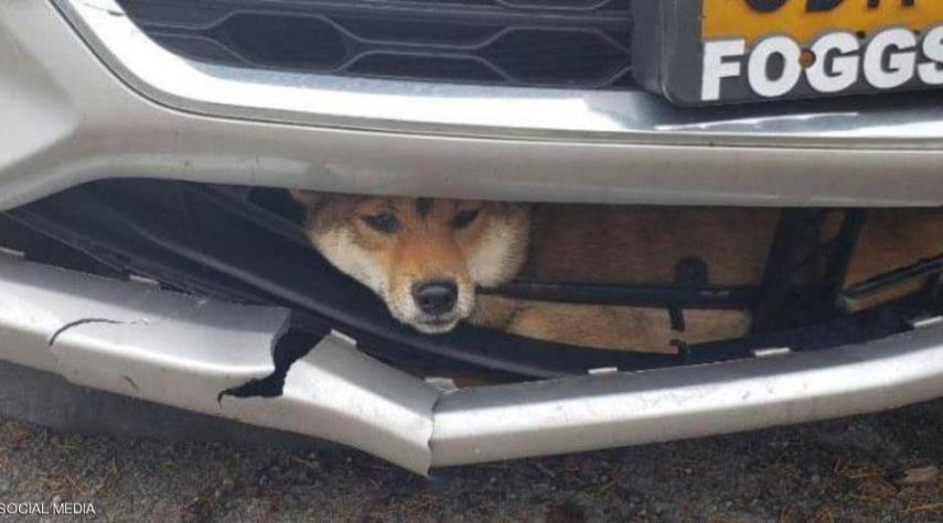 قصة الكلب الذي علق في مقدمة سيارة لنحو ساعة!