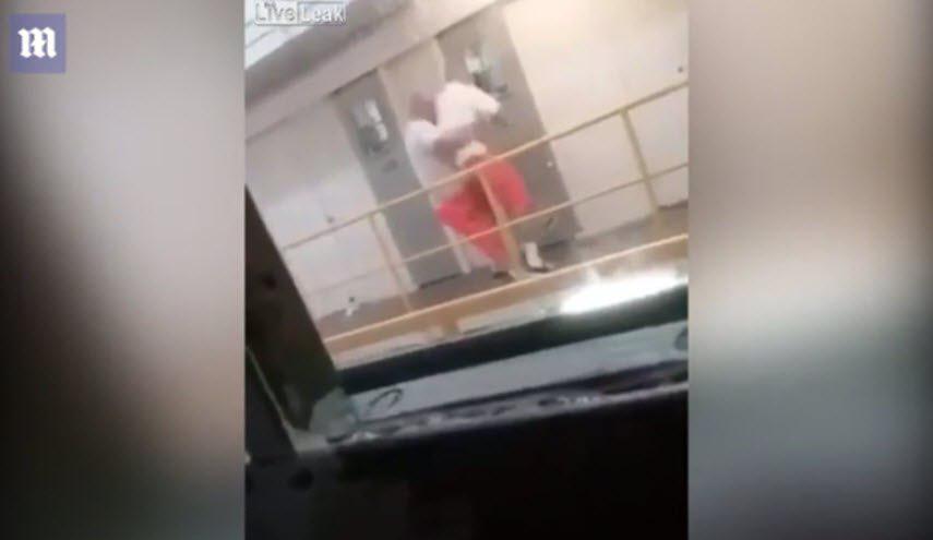شاهد لحظة إلقاء مسجون لزميله من الطابق الثاني