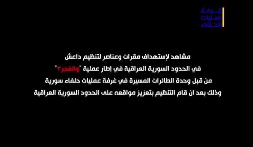 سوريا _ الكوثر: وزعت غرفة عمليات حلفاء سوريا مشاهد لاستهداف مقرات وعناصر داعش الوهابية في الحدود السورية العراقية في إطار عملية "والفجر_3".