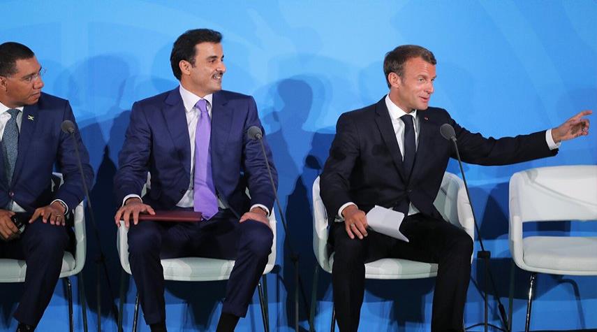 بالصورة..مصافحة الرئيس الفرنسي لأمير قطر تثير جدلاً
